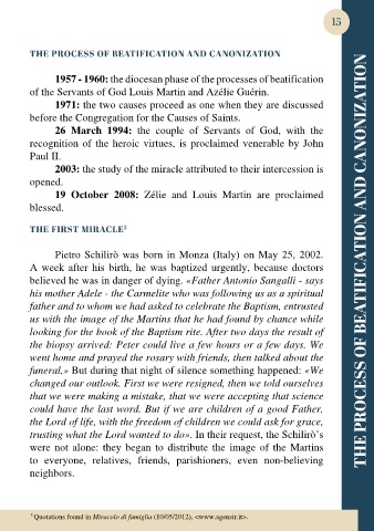 A week after his birth, he was baptized urgently, because doctors THE PROCESS OF BEATIFICATION AND CANONIZATION