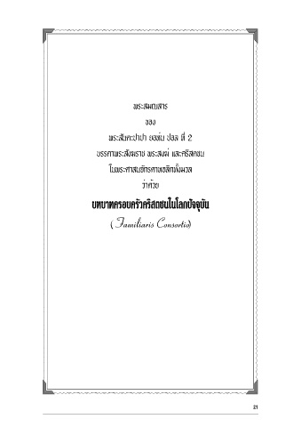 พระสมณสาร ของ พระสันตะปาปา ยอห์น ปอล ที่ 2 บรรดาพระสังฆราช พระสงฆ์ และคริสตชน ในพระศาสนจักรคาทอลิกทั้งมวล ว่าด้วย บทบาทครอบครัวคริสตชนในโลกปัจจุบัน (Familiaris Consortio) 21