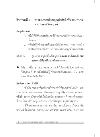กิจกรรมที่ 5 การถอดบทเรียนคุณค่าศักดิ์ศรีและบทบาท