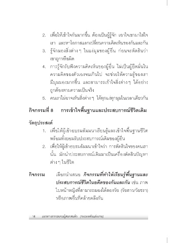 กิจกรรมที่ 8 การเข้าใจพื้นฐานและประสบการณ์ชีวิตเดิม